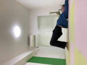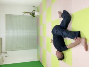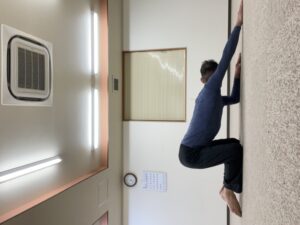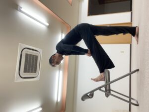 体側をストレッチして、背中の左右差を無くしていきましょう。沢山やり方があるのですが、どこでも出来る壁押しのポーズはおすすめです。腰痛にも効果的。やり方は、左を伸ばしたい時は、左手を上にして、右足が壁側